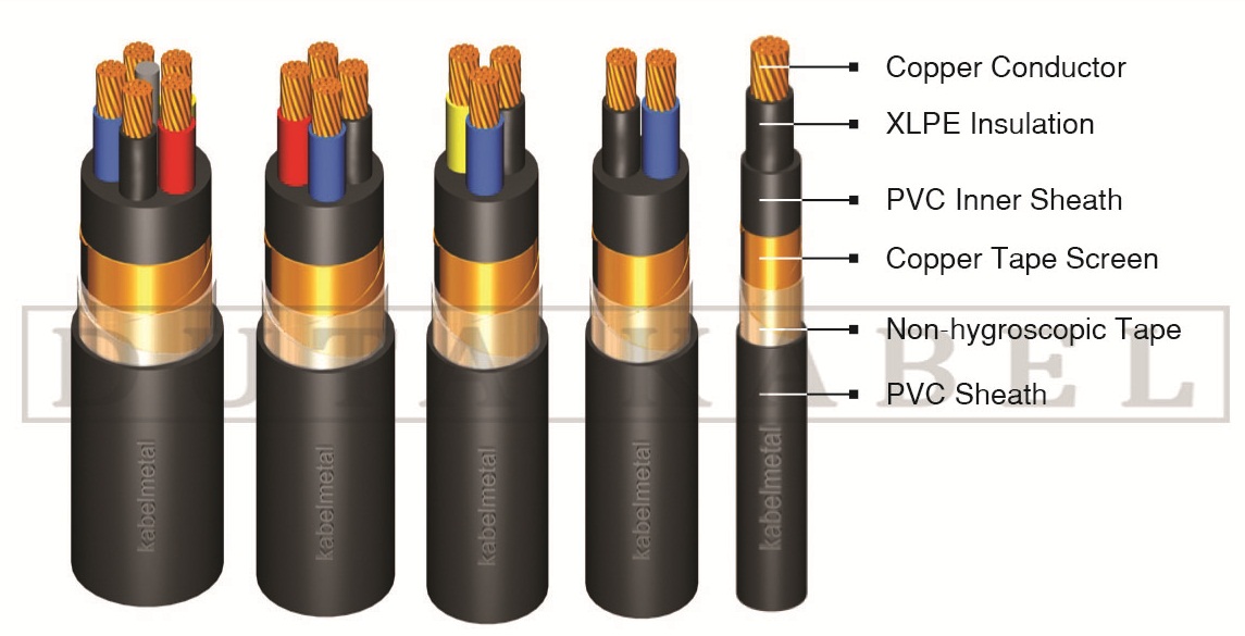(Copper Conductor, XLPE Insulated, Copper Tape Screen, PVC Sheathed)